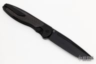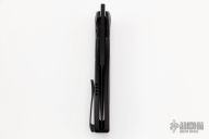 This Mini Tempest from Brian Nadeau features a black PVD drop point blade with a fuller and notched thumbrest/front flipper. The handle has a black PVD titanium frame with carbon fiber inlays, black PVD titanium tip up clip. Nice detent, lockup and blade seating, stainless lockface insert. Includes original box. New from maker!