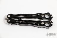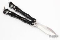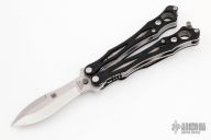 This Spyderfly Balisong by Spyderco has a satin finished spear point blade with false top edge. Handle is black G10 over stainless steel liners and stainless steel paper-clip style pocket clip. Comes with original box and papers.  Excellent condition.