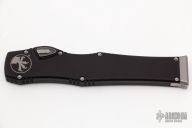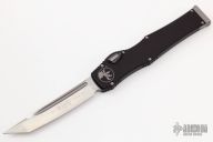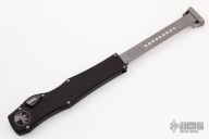 This Halo VI by Microtech knives features a satin finished blade with fullers and satin flats. The handle has a black aluminum frame with blasted stainless steel hardware and charging handle. Dated 04/2018 and #598. Comes with original box and papers. Excellent condition.