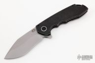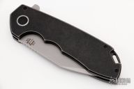 This Ranger by M3 Tactical Tech features a tumble finished blade with notched thumbrest and flipper. The handle has a black tumbled titanium frame with matching backspacer and tip up clip, satin finished titanium pivot collars. Rides on bearings, nice detent, lockup and blade seating. Comes with original box, zippered case and COA #099. Excellent condition.