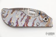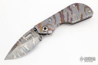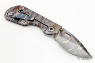 His knife line grew over the following years to include different varieties of fixed blades, all distinctive and many with specialized uses. But constant in all of them was a disregard for convention, and a desire to try new ideas. An example of this was the Ajax – it featured a very wide blade surface clearly designed to inflict damage. It drew on the weapons carried by Roman legionnaires, yet was modern and usable in the 21stCentury battlefield. Mick also worked on his technical skills, always striving to become better at the physical craft. At the 2002 Blade Show, a group of the best tactical knifemakers in the country decided to compete with each other to produce the most innovative and interesting fixed “battle blade” at the show. Mick’s entry, an incredible integral knife made out of ½” titanium stock with a zippered composite blade, gorgeous handles, and integral guard was the unanimous winner, and effectively retired the competition.