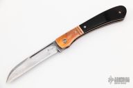 "Ever since I can remember I have had a fascination with knives. My grandfather gave me my first pocketknife when I was 5, and it was that moment that did it. I started making knives by taking apart my mothers kitchen knives. My parents thought that there was something "wrong" with me because I had a fascination with sharp objects. That all changed when I took them to a local knife show and showed them a whole room of people interested in knives. I seriously began making knives when I was 16. I have been making knives for over 25 years. For the past 10 years I have mainly concentrated on making folding knives and automatics. I mainly concentrate on making one-of-a-kind folding knives of my own design, but I do occasionally make a few fixed blades. I specialize in unique file work patterns, and I also do simple carving and some of my own sheath work. For steels I mostly use Damascus, but also use 154CM, CPM154, D-2, 1095, W-2 and others. Handle materials include Exotic Woods, Stag, Pearl, and various types of Ivories including Elephant, Mammoth, and Walrus. As far as knife builds go, I think I am going to concentrate on building more elaborate autos as well as converting some of my older designs into autos. I appreciate the challenge of making an auto, and it keeps knife making exciting for me.”