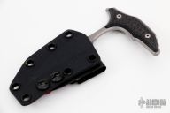 The BEE is a push dagger collaboration with Bastinelli Knives that is both stylish and highly effective. It's a tactical knife through and through, and we honestly can't think of a better knife we'd want in a close-quarters combat (CQC) encounter than this. Its design characteristics target specific CQC needs such as swift, effective deployment, reliable cutting and penetration, low visibility profile, modular carry options, and robust construction. Straight punches, jabs, and hammer fist strikes yield tremendous cutting potential with minimal training or effort. The included friction fit Kydex sheath is outfitted with a discreet carry concept (IWB) clip that keeps the knife close at hand and poised to strike. It shines in a last-ditch tactical scenario but works equally well as an everyday carry fixed blade. Has a bead blasted blade and carbon fiber scales. Comes with original box, sheath and papers. New condition.