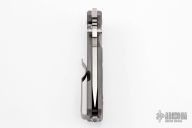This DPx HEST/F Mr. DP Titanium edition model features an American aerospace grade titanium frame lock handle with a machined MR. DP pattern.