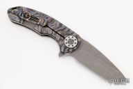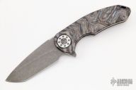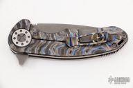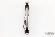 This F3 by Curtiss Knives features a stonewashed blade with notched thumbrest and flipper. The handle has an anodized/textured titanium frame with an anodized titanium tip up pocket clip and hardware. Rides on bearings, nice detent and lockup.  Includes a padded zippered case.  Excellent Condition.