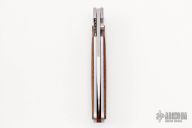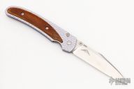 Benchmade knives feature superior craftsmanship. The 440 Opportunist knife is an example of the fine quality folding knife you can expect. The Opportunist is an Osbourne design that features a wood onlay over a jig-pattern aluminum handle texture. The stylish S30V stainless steel blade has a modified Wharncliffe style and a satin finish. This is a knife you'll want to have around, choose to use the tip-down clip or remove it if you prefer. Has a couple marks on the blade, otherwise excellent condition.