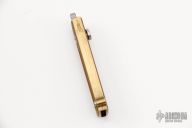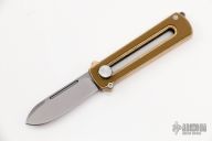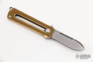 The BarloX Manual OTF is an exceptional EDC knife.  It has a Katana M390 blade with Aluminum Bronze handles with G10 inserts.  The blade extends and retracts from the front of the handle, sliding on rails.  There are no springs involved just the mechanical movement of pushing and pulling of the button.  It is legal to own carry the BarloX in California, but this is manual so it doesn't even matter.   Please know your knife laws for your state.   Includes the original box. New from maker!