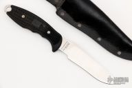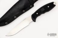 SOG Field Knife, satin finished blade with notched thumbrest, .141" blade stock and 1.327" blade depth, full tang construction with rubber scales. Comes with a black leather sheath. Has a couple light scratches, otherwise excellent condition.