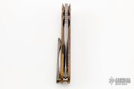 This Tailwhip V2 Flipper by Direware Custom Knives features a two-tone blade with swedge, notched thumbrest and flipper. The handle is comprised of a textured and anodized titanium frame with a pattern welded titanium/zirconium tip up clip that has also been textured. Includes original box. New from maker.