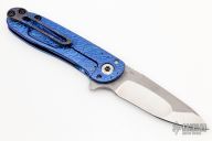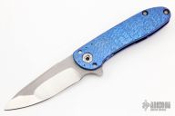 This Tailwhip V2 Flipper by Direware Custom Knives features a two-tone blade with swedge, notched thumbrest and flipper. The handle is comprised of a textured and anodized titanium frame with a pattern welded titanium/zirconium tip up clip that has also been textured. Includes original box. New from maker.