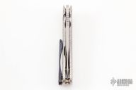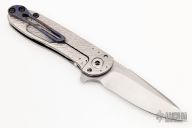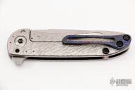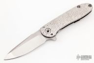 This Tailwhip V2 Flipper by Direware Custom Knives features a two-tone blade with swedge, notched thumbrest and flipper. The handle is comprised of a textured titanium frame with a pattern welded titanium/zirconium tip up clip that has also been textured. Includes original box. New from maker.