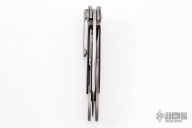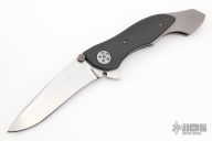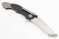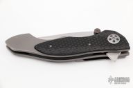 This Fox Flipper by Allen Elishewitz features a hand rub satin finished blade dual thumbstuds and flipper. The handle has carbon fiber scales, bead blasted titanium liners, tip down bead blasted stainless steel clip. Nice detent, blade seating, and lockup. Excellent condition.