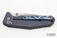 This Pocket Rocket by Shane Sibert features a satin finished spear point blade and an anodized titanium handle with a bead blast finish, tip up two tone titanium clip. Notched thumbrest. black G-10 backspacer with silver pin inlays. Smooth action. Nice detent, lockup and blade seating. Outstanding work. Excellent condition. Comes with a nylon zippered case.