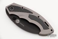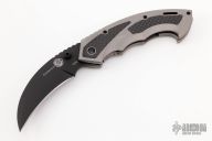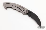 This Caracara by Masters of Defense features a DLC coated hawkbill blade with notched thumbrest and dual thumbstuds. The handle is bead blasted titanium with carbon fiber inserts and a bead blasted titanium clip. New condition. Comes with original box, extra clip and papers. This one is in NEW CONDITION. I opened the sealed box, it had never been opened.