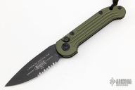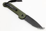 This LUDT side opening automatic from Microtech has a black finish blade with a partially serrated edge and a contoured OD Green aluminum frame. Stainless steel clip. Dated 08/2018 and serial number 09193, comes with original box and papers. Excellent condition.