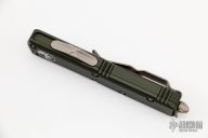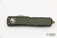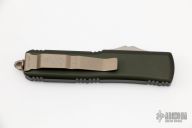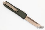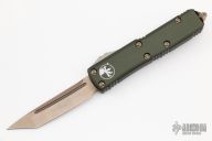 This UTX-85 by Microtech features a bronzed and stonewashed tanto blade with fullers. The handle has an OD Green aluminum frame with bronzed hardware and tip down clip. S/N 17051 dated 08/2018. Comes with original box and papers. Excellent condition.