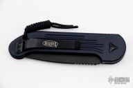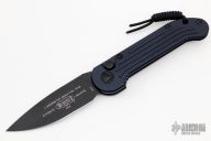 This LUDT side opening automatic by Microtech has a black finished blade with a standard edge and a contoured black aluminum frame. Stainless steel clip. Dated 09/2018 and serial number 09418. Comes with original box and papers. Excellent condition.