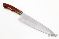 This Knife by SMID Damascus features a Deep-Core Mosaic Damascus blade with .109" blade stock and 2.085" blade depth, hidden tang construction. The handle has a Damascus guard, maple burl wood grip with paddock wood. Comes with a zippered case and COA. New from maker.