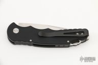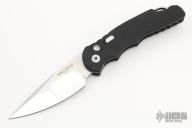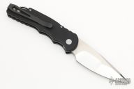 This Custom TR-5 by Pro-Tech Knives features a mirror polished compound hand ground blade. The handle has a black aluminum handle with abalone inlaid push button, stainless steel backspacer with lanyard hole, tip up black stainless steel clip. Comes with original box and papers. Excellent condition.  #162