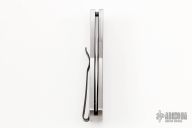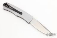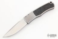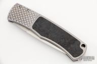 This Magic Bolster Release Automatic from Pro-Tech Knives features a drop point stonewashed blade with swedge. The handle is comprised of a satin finished stainless steel frame with checkered bolster and a marble carbon fiber inlay on the "A" side of the handle. Black coated stainless steel clip is positioned for tip up carry. Lanyard hole in the pommel. Includes Pro-Tech box and papers. Excellent condition.