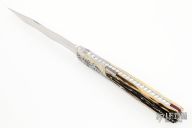 W.D. Pease has been a full-time custom knife maker since 1978 after joining the Knife Makers Guild in 1976. Since 1969, W.D. has been creating these unique masterpieces but has been drawn almost exclusively to folders due to the challenge in making them and for their demand. From stainless steel and Damascus blades to beautiful pearl, stag and bighorn sheep handles, his knifes are among the finest around.
