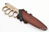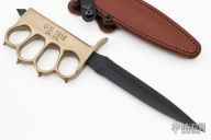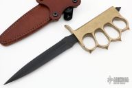 This MK1 Trench Knife by Les George features a black Cerakote double edged blade with .190" blade stock, .998" blade depth, hidden tang construction. The handle has a cast brass knuckle guard grip with a skull crusher. Comes with a brown leather scabbard by Chattanooga Leatherworks. Comes with a zippered case. New from maker at the 2022 Blade Show.