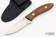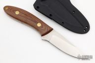 This K-56 Evo Hunter by Dozier Knives features a satin finished blade, .137" blade stock and 1.102" blade depth, full tang construction. The handle has natural canvas micarta scales with brass pins and lanyard hole. Comes with kydex sheath with belt clip. New from maker.