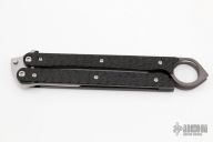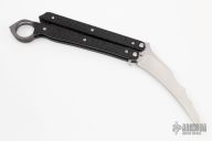 This Felix Sheng Balisong by Jens Anso features a hand rub satin finished blade. The handle has textured carbon fiber scales, bead blasted titanium liners and black G-10 spacers. Comes with a zippered case. Excellent condition. This is the first Anso balisong we have ever had.