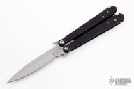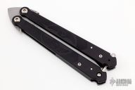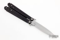 This Wings balisong by Rob Dalton features a bead blast blade and black aluminum handles, has a ball latch at the butt. Locks up tight in both positions. Very hard to find. Excellent condition. Comes with a zippered case.