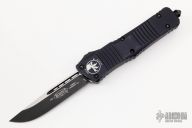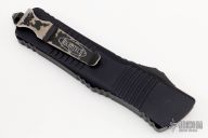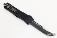 This Combat Troodon OTF automatic features a black S/E blade. Black aluminum handle with black stainless steel clip, tip down carry and all black hardware and glass breaker. Serial number 19809 and dated 06/2018. Comes with original box. Has been used, has scuffs and scratches, otherwise good condition.