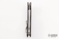 The concept of the Junior folder comes from Romanian Technical Manager Alexandru Diaconescu. His young son was entering the curious-boy-years, ready and asking for his first pocketknife. The request brought-up normal parental questions and concerns regarding knife safety and usability motivating Dionescu to create a folder with a prominent guard behind the blade’s sharpened edge. The guard maintains the hand in firm control over the blade while creating a block, effectively stopping fingers from sliding forward and connecting with the sharp edge. And it’s surprisingly comfortable in any sized hand- adult man, woman or juvenile. Position of the guard in the G-10 handle leaves little room for a locking mechanism and a Spyderco Compression Lock is added for its compact components and impressive strength. Screw-together construction, an oversized lanyard hole and a deep pocket left- or right-handed tip-up wire clip further complement the handle. The VG-10 blade is ground full-flat and offered Plain Edged for the best available cutting performance with non-skid jimping located on top of the spine behind the Spyderco Round Hole. Has a couple scuffs, otherwise excellent condition.