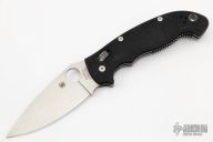 This Manix 2 Axis Lock Folder has a bead blasted blade with thumb hole and notched thumb ramp. Scales are black G-10 over stainless steel partially jimped liners, stainless steel tip up clip - RH/LH reversible, and stainless steel lanyard tube pin. Excellent condition.