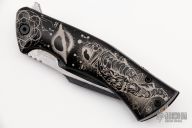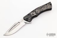 Jason’s early knives were created through the stock removal process. In 2001 he attended the Bill Moran School of Bladesmithing in Old Washington, Arkansas. Jason won Best New Maker at Blade Show West that same year. His work quickly became sought after because of his recognizable style. According to Jason, some of the most valuable input he ever received was from his friends George Herron and Daniel Winkler, both of whom encouraged him to always remain true to his own creative niche. In 2007 he received his ABS Mastersmith rating and was awarded the B.R. Hughes Award for the best knife by a Mastersmith candidate. He continues to receive awards for his extraordinary skill. Knight is well known among custom makers and collectors not only as an innovator, but also for his mastery of metallurgy and blade geometry.