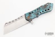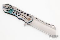 This Moab XL Hacker by Darrel Ralph features a matte finished wharncliffe style blade with flipper and fileworked spine. The handle has a natural copper and titanium frame, anodized titanium backspacer with lanyard hole and tip up clip. Excellent condition. Includes original zippered case and COA dated 09/18. Excellent condition.