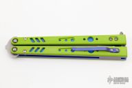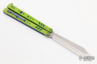 This BRS Premium Replicant features a tumble finished clip point tanto blade. The handle is comprised of green G-10 over anodized titanium liners and tumbled backspacers. Stainless steel T latch. Excellent condition. Includes original box and papers.