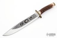 Bruce received his art training at Cal-State University at Los Angeles and is a graduate mechanical engineer. He started engraving in 1978 and has been engraving full time since 1984. Bruce spends around 60 hours of engraving time on each knife.