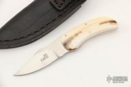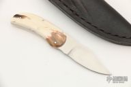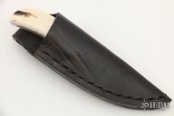 This Bush Baby by Arno Bernard features a hand rub satin finished blade, .112" blade stock and .817" blade depth, full tapered tang construction. The handle has warthog tusk scales. Comes with a black leather sheath. Excellent condition.
