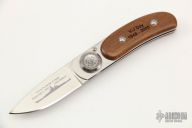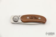 This unique new version of the Paul® Pocket knife features handles fashioned from teak-wood deck boards recovered from the battleship USS Missouri. When you purchase this knife you literally own a “Piece of History” commemorating the signing of the formal surrender by Japan signaling the end of hostilities in the Pacific theater of war. We obtained the teak wood during the restoration of the Missouri before it was put on display at Pearl Harbor. This beautiful and unique knife also comes in a solid wood box that is marked with the signing date of the surrender, an American flag and the outline of the battleship Missouri. This model is limited to 396 pieces due to availability of the teak deck wood from the Missouri. The “Paul® Pocket Knife” is a new design configuration of Paul® Knife developed for Lone Wolf Knives by the designer of the Paul Knife series of knives, Paul W. Poehlmann.