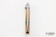This Paul Pocket Knife features the Paul Poehlmann axial locking mechanism. Opens by depressing the button on the backside and rotating the face side dial. Closes the same way, rotating the dial in the opposite direction. The handle is comprised of gold lip pearl and malachite scales over stainless steel liners and backspacer. Excellent condition. Includes original box, leather sheath and papers.