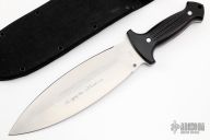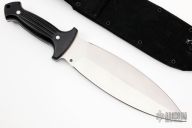 This Combat Smatchet by Boker features a double edged satin finished blade, .176" blade stock and 2.790" blade depth, full tang construction. The handle has black composite scales. Comes with a black nylon sheath with a belt loop. #749 on blade along with "Rex Applegate W.Z. Fairbairn". Excellent condition.