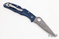 This Endura lock back folding knife by Spyderco features a VG-10 core San Mai Damascus blade, thumbhole and notched thumbrest. The handle has FRN scales with stainless steel backspacer and 4-way reversible stainless steel clip. Include original box and papers. Excellent condition.