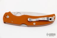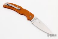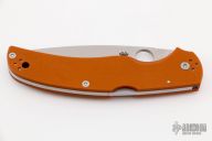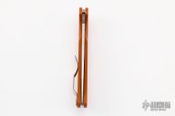 This Native Chief takes the time-tested design of the original and stretches it out to create a longer and slimmer profile with even more cutting performance. Burnt Orange G-10 scales and a full-flat ground Rex 45 steel blade solidify the design. Textured G-10 handle scales are backed up by a precision-machined lockback mechanism. 4-position pocket clip allows for fully ambidextrous tip-up or tip-down carry. Excellent condition. Comes with original box and papers.