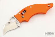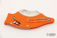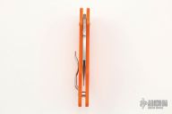 This Sprint Run DoDo features a satin finished hawkbill blade with thumbhole. The handle is orange G-10 with a tip up clip, left or right interchangeable clip. Axis lock with steel ball. Comes with original box and papers. Excellent condition. 1000 piece sprint run.