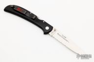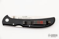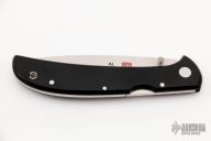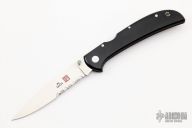 This Eagle Ultralight lock back by Al Mar Knives has a satin finish blade with dual thumb studs and partial serrations. Black linen micarta scales and a black pocket clip. Strong lock up. Comes with original box. Some minor scuffs and carry marks but otherwise great condition.