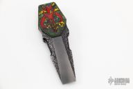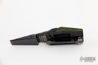 This "MTAP B-H" by Bright Design is made from stonewashed and carved titanium with fat carbon magnetic cover plates, the carbon fiber is green/black/yellow. "MTAP More than a prybar Bounty 24/80" on the underside, zirconium clip. Comes with original box, COA, stickers and patches. Excellent condition.