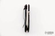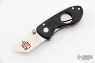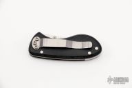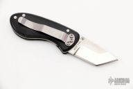 This knife by Al Mar features a chisel ground tanto blade with single knurled thumbstud. The handle has a black linen micarta frame with satin finished stainless steel liner and backspacer, blade stainless steel clip, tip down carry. Has some scuffs and scratches, otherwise excellent condition.