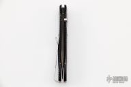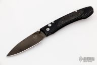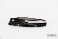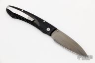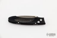 This E6-3 by William Henry features a tungsten-carbide coated blade with single thumbstud. The handle has a black aluminum frame with carbon fiber inlays and tip up clip. Comes with original box and papers. Has scuffs, scratches, blemishes, otherwise good condition.