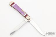 This Custom 2-Blade Trapper by Case has been modified by Brian Yellowhorse. It features two mirror polished blades both with nail nicks. The handle has carved nickel silver bolsters, multi-piece covers, brass liners and stainless steel springs. Comes with original box. Excellent condition.
