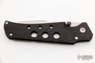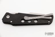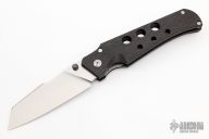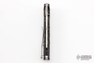 This Scout from Jason Guthrie features a hand rub satin finish wharncliffe blade with single thumb stud and notched thumbrest. The handle is comprised of side cut carbon fiber, titanium inlaid lockbar, barrel spacers, and titanium tip up pocket clip. Lock face as been fitted with the "Guthrie Tungsten Insert" for increased lock life. Comes with zipper case, and COA dated Jan 2022. New from Maker.
