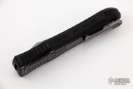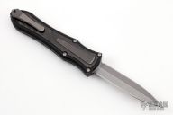 This knife is a Deadlock Model C by Grant and Gavin Hawk. It has a double-edged stonewashed blade. The handle has a carbon fiber and black aluminum frame with a tip down spring clip, titanium. The thumb slide on the handle is also titanium and handle has titanium overlays. Comes with a cloth pouch. Grant and Gavin Hawk set out to create a double action OTF with no blade play.... They did it, NO blade play. Comes with tool, drawstring bag and card. Excellent Condition.